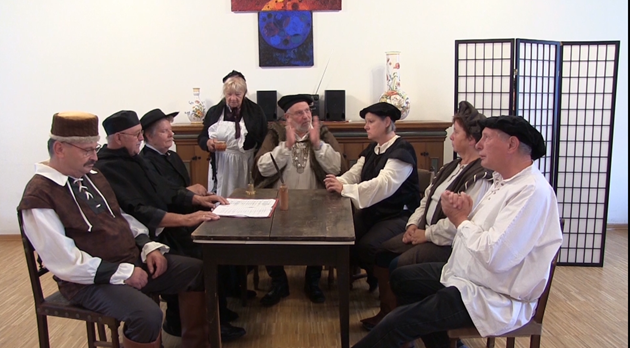 Bildfolge: Navi, Zwirngiebel, Messweinprobe, Mittelalter - Ratssitzung, Rheinmatrosen